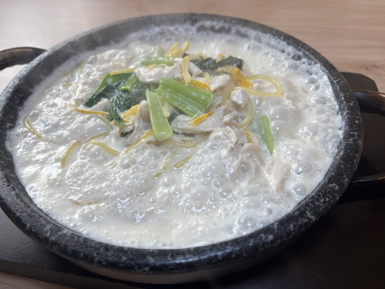 熱々の石鍋で仕上げるもちもち生パスタ専門店。石鍋の高温が麺の食感を引き立て、魚介ベースの濃厚スープが絶妙に絡むことで深いコクと旨みが広がります。