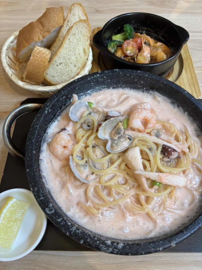 - 「石鍋で出てくるパスタがアツアツで感動!」