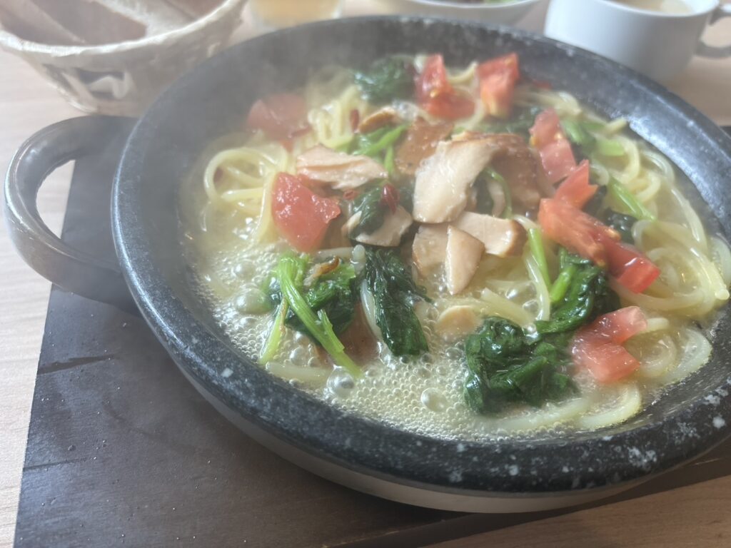 アツアツ石鍋仕上げのグツグツ系パスタ!