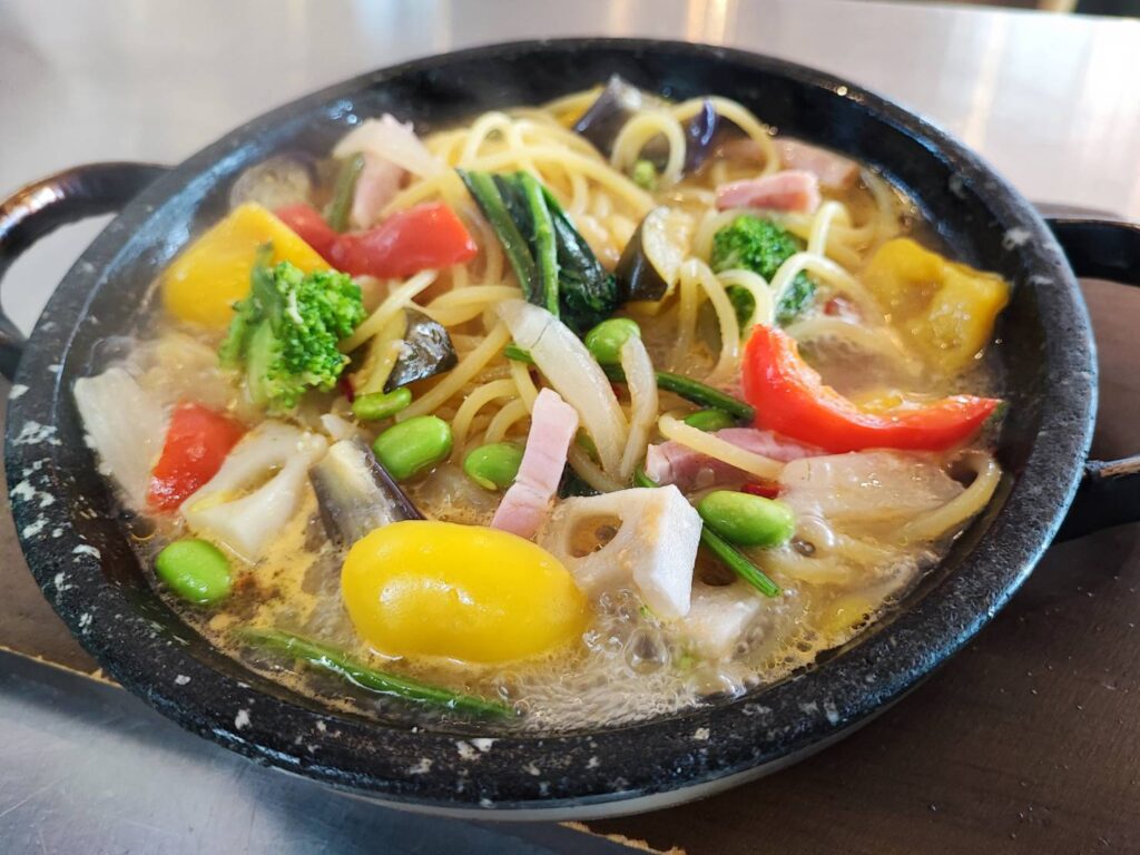 にんにく香るペペロンチーノをベースに、季節の野菜をどっさり。