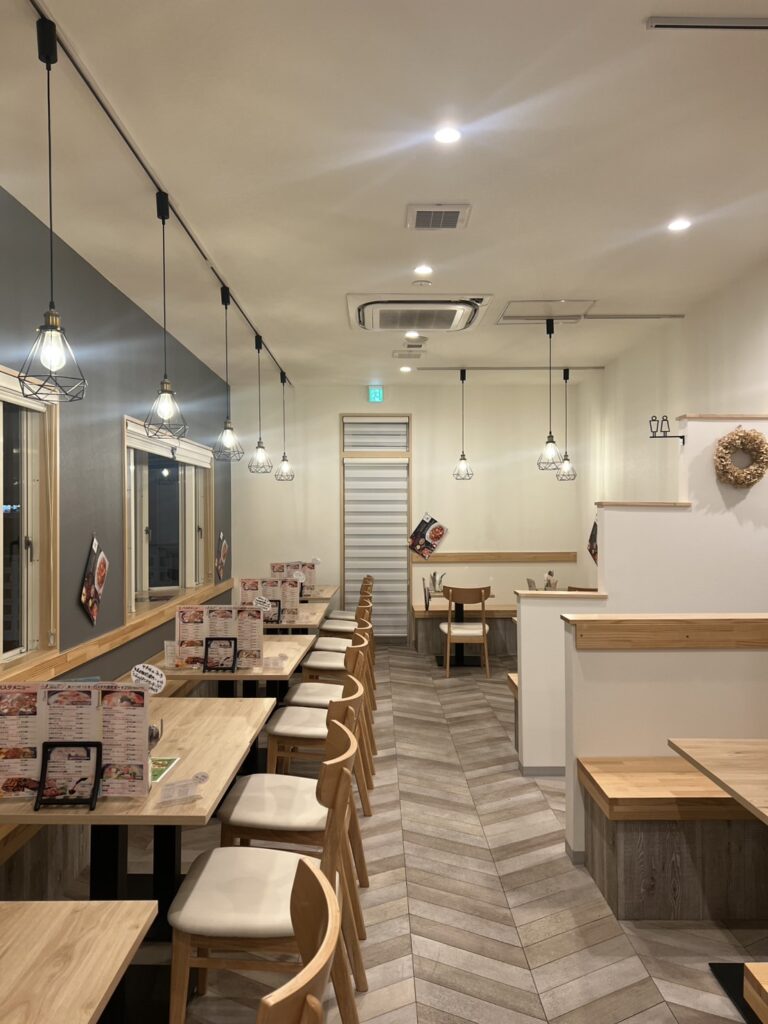 魔法のパスタは、全席禁煙・テーブル席のみの落ち着いた空間。