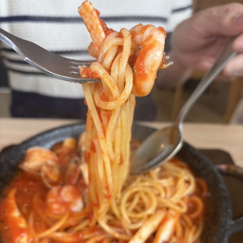 - 淡路島直送の生パスタを石鍋でグツグツ仕上げ