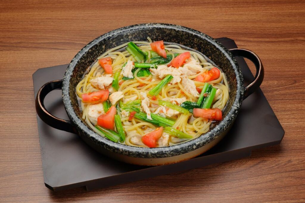 食べる前からテーブルが盛り上がる、それが石焼き生パスタです。